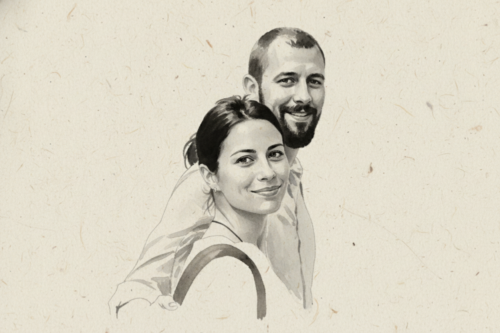 인물 다정한 연인 흑백 수묵화