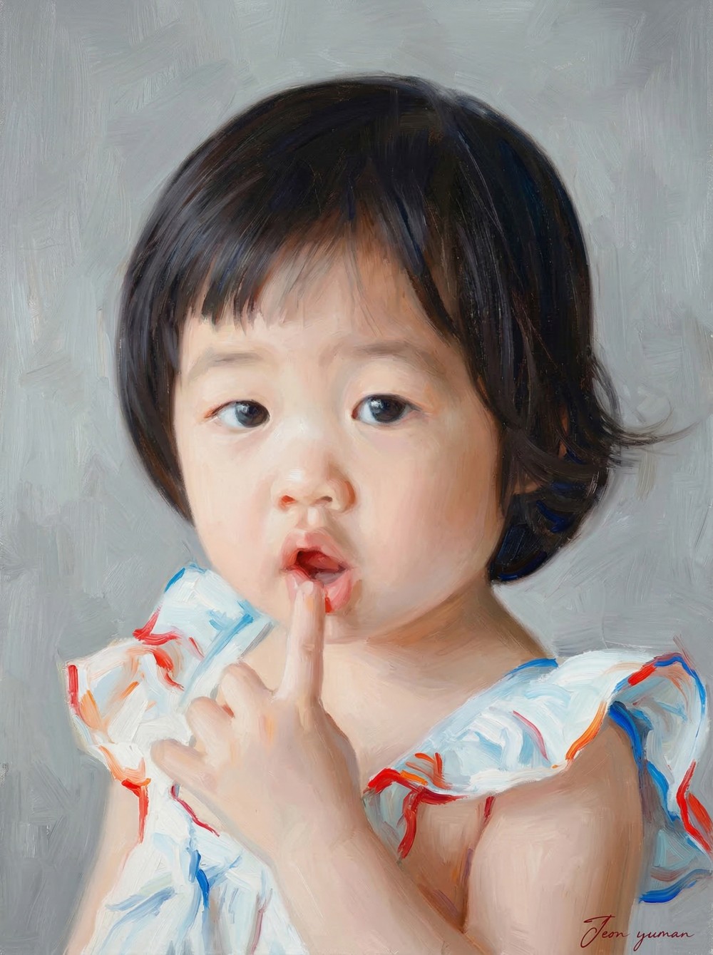 아이의 눈동자 속에 맺힌 하이라이트(빛망울)가 마치 실제 살아있는 아이와 눈을 맞추는 듯한 생동감을 표현했다.