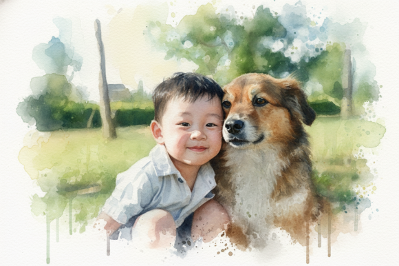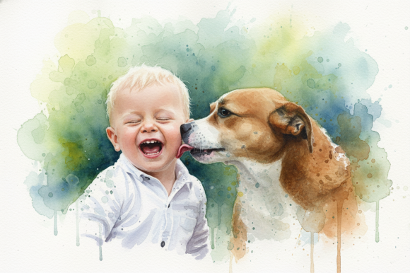 • 개가 어린아이의 사랑스럽고 따뜻한 순간을 포착