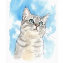 이 그림은 수묵화 기법을 사용하여 묘사되었습니다. 부드러운 붓 터치와 번짐 효과는 따뜻하고 부드러운 느낌을 줍니다.
